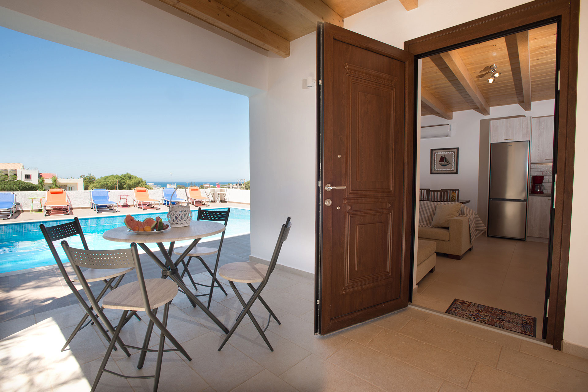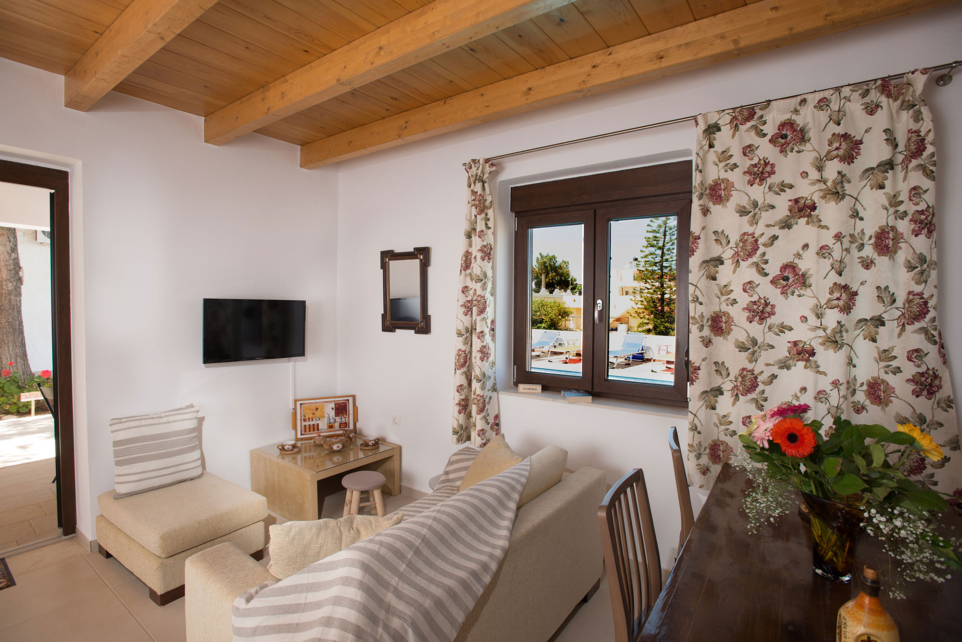 One of the maisonette’s highlights is its cozy terrace, which presents a breathtaking view of the South Cretan Sea, inviting guests to immerse themselves in the beauty of their surroundings. The poolside courtyard is a tranquil oasis, perfect for enjoying moments of relaxation or indulging in the pleasure of an afternoon coffee while witnessing one of the most beautiful sunsets the region has to offer.